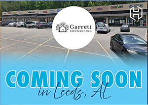 Garrett Counseling, a trusted provider of health services since 2009, is opening its 5th Alabama location at Leeds Village (8525 Whitfield Avenue, Leeds, AL 35094).
