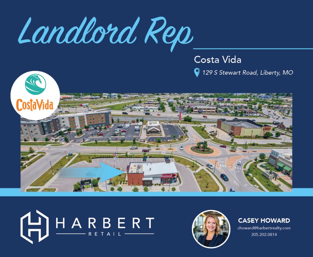Harbert Retail has successfully secured a new lease, bringing Costa Vida to a prime drive-thru location within the highly sought-after Liberty Commons development in Liberty, Missouri. Casey Howard of Harbert Retail represented the landlord in the transaction for the 2,298 SF free-standing quick-service restaurant (QSR).